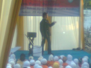 Suasana terlihat sangat semarak. Sekitar 250 orang dan diantaranya 200 orang anak-anak usia pra sekolah dan sekolah dasar hadir dalam acara puncak peringatan HUT pertama Komunitas Blogger Bekasi (BeBlog) ini. Mayoritas anak-anak yang datang berada dibawah asuhan Rumah Baca Mutiara Mandiri, sebuah “sekolah” sederhana yang disediakan untuk anak-anak yatim dan dhuafa di desa Jatimulya. Rumah Baca Mutiara Mandiri yang dipimpin oleh Pak Toni (seorang pengamen jalanan) itu sendiri berlokasi sekitar 150 meter dari lokasi acara dan telah eksis selama 3 tahun.