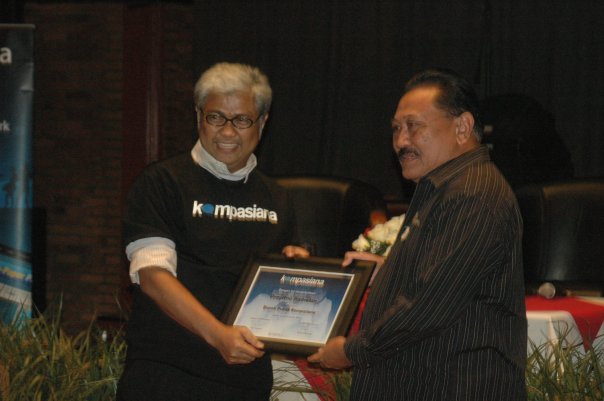 Penganugerahan Bapak Blogger Kompasiana kepada Prayitno Ramelan oleh Direktur Kompas.com Taufik H Mihardja, 22 Oktober 2009