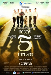 Begitulah sekelumit cuplikan adegan yang disutradarai Affandi Abdul Rachman dan sebagai penulis skenarionya mas Salma Aristo. Sebetulnya masih banyak yang ingin saya ceritakan (resensi), namun biar penasaran silahkan lengkapnya nonton aja film Negeri 5 Menara di bioskop-bioskop yang akan rilis mulai tanggal 1 Maret 2012. Salam “man jadda wajada”.