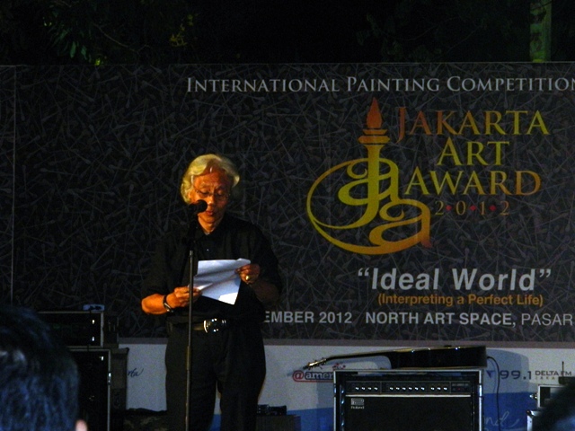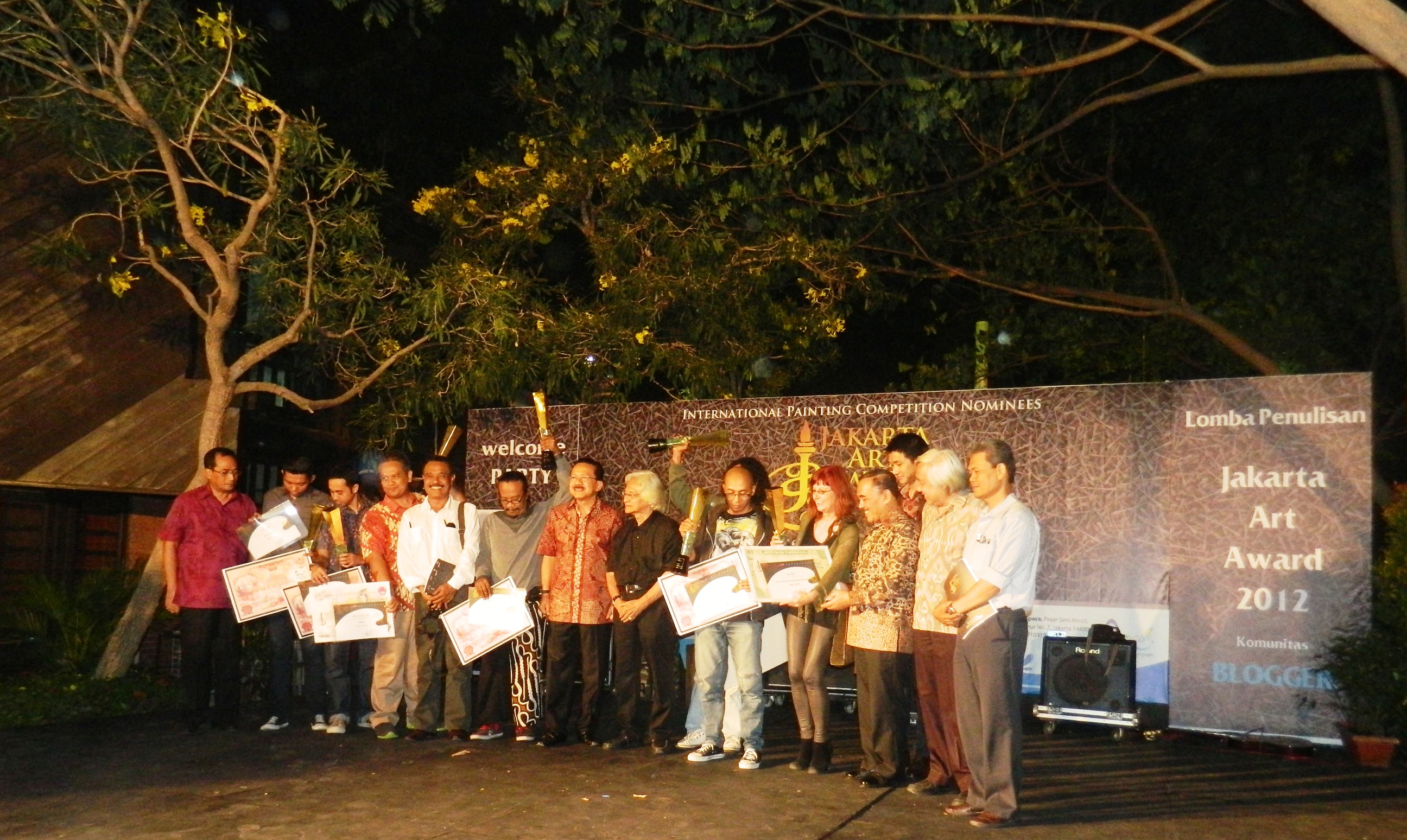 Selanjutnya tampil Prof. Sri Hadi Soedarsono MA sebagai Ketua Dewan Juri tampil ke atas panggung mengumumkan pemenang Lomba Jakarta Art Award 2012. Lukisan “Keluarga Sakinah” karya Sapto Sugiyo Utomo berhasil meraih anugerah Karya Utama dengan hadiah sebesar Rp 100 juta. Sedangkan lima karya lainnya memenangkan hadiah masing-masing Rp 75 juta yaitu : Mansyur Mas’ud (“Detak Jantung Jakarta”), S Dwi Satya (“Sesuatu Yang Indah”), Sentot Widodo (“Reparasi Nurani”), Banu Arsana (“Siluet Insan Kamil”) dan Vani Hidayatur Rahman (“Unity”). Sementara itu ditetapkan pula pemenang Best Painting International Participant yang jatuh pada pelukis Mai Eriard (“Compres Love, Love, Love2″) yang memenangkan hadiah sebesar US$ 7000.